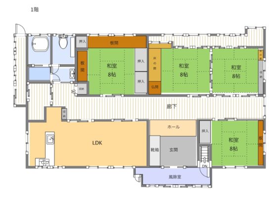 間取階段がないため、家事動線がコンパクトで暮らしやすい平屋です。地下室もございます。※図面と現況が異なる場合は現況を優先します。