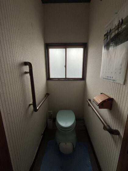 手すり付きのトイレは立ち上がりが楽で、腰や膝への負担を軽減できます。